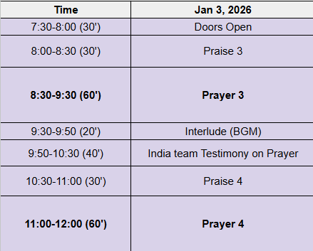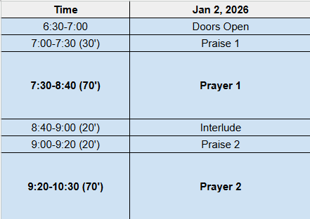 We are starting the new year, 2026 with Fasting and Prayer gathering on January 2 (Friday) and 3 (Saturday). This is the second time we are having an extended time of prayer with fasting in our life together as a church. I encourage you to come and participate.