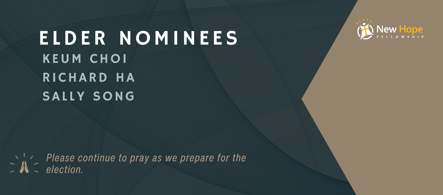 God establishes his church through his people, especially by raising servant-leaders. Establishing church leadership is a very important part of the life and ministry of a church. Establishing good leaders will benefit the church immensely and further God’s mission in the world powerfully. We are grateful that we have 3 nominees (Deacons Sally Song and Keum Choi from Mississauga, Deacon Richard Ha from Downtown Campus) who have prayerfully discerned being part of this process.