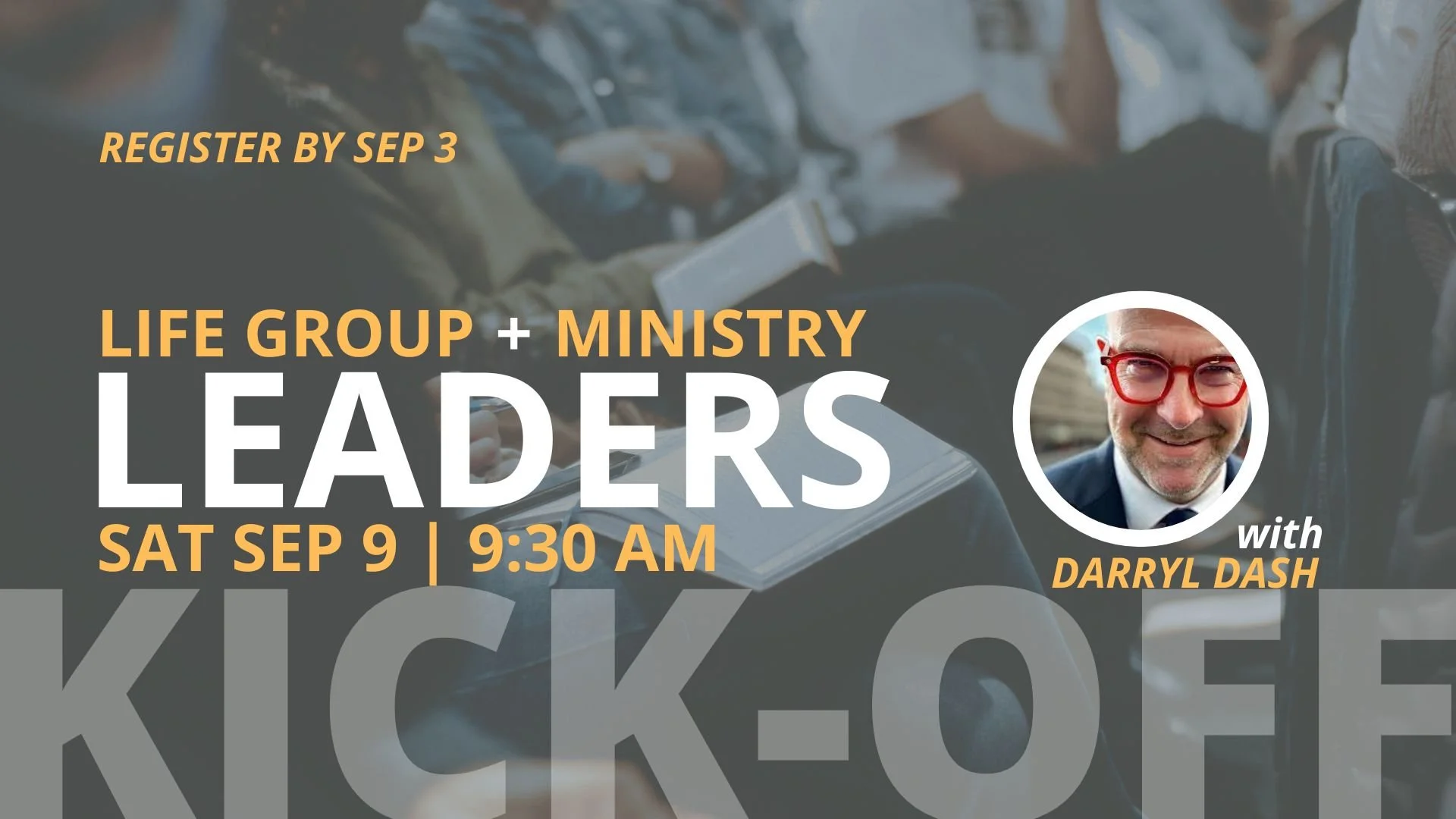 For all who will be serving as leaders in various ministries in the new season (including Life Groups), please be reminded that we will have a Life Group and Ministry Leaders Kick-off Gathering on Saturday, September 9 at 9:30 AM in Room #308.