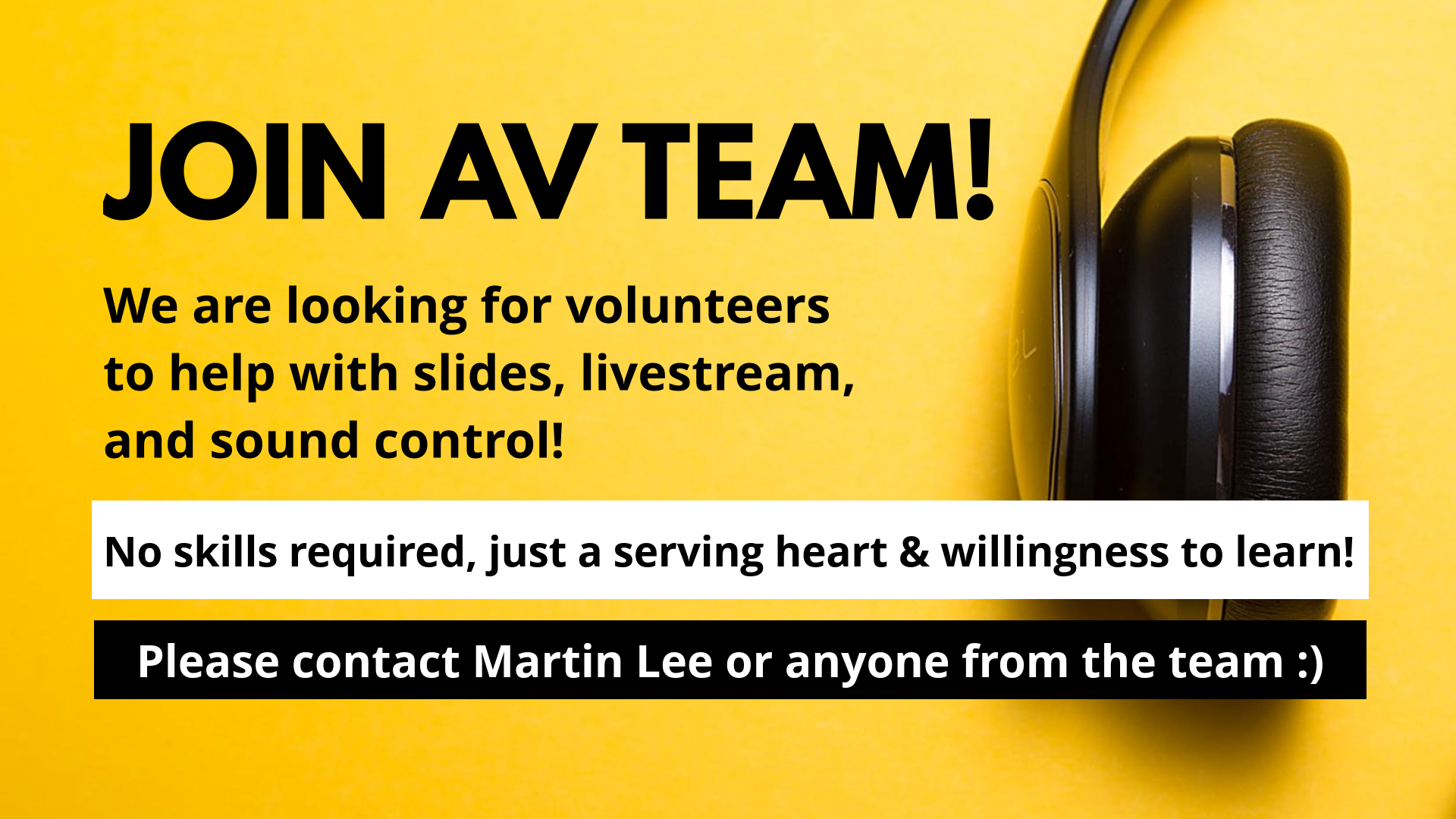 Uptown’s AV Team is looking for volunteers with a heart to serve the Lord and the church! If you are a covenant member of the church and you are looking for a way to serve and worship the Lord, we welcome you with open arms! Experience is always welcome, but not necessary. If you don’t have any experience, we will fully provide you with training.