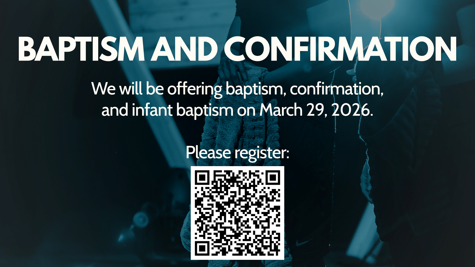 We will be offering baptism, confirmation, and infant baptism on Palm Sunday, March 29, 2026.
