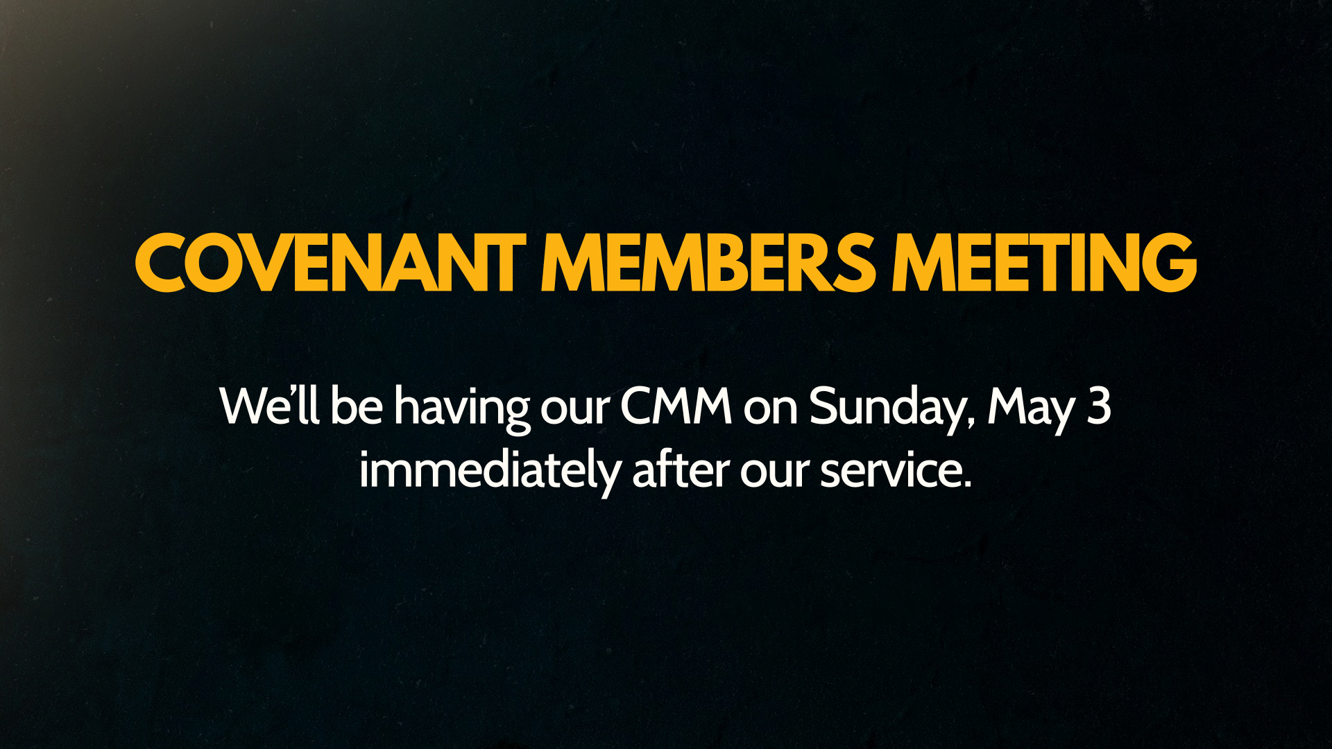 We’ll be having our CMM on Sunday, May 3 immediately after our service.